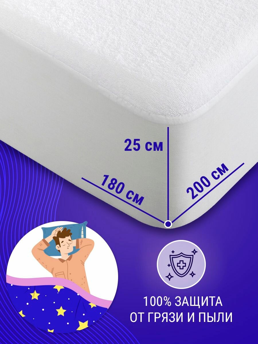 Наматрасник 180х200 непромокаемый на резинке, ОТК, белый информация: