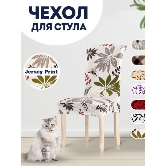 Чехол на стул Luxalto Jersey Print 160 gsm (107) 10405, белый, листья информация:
