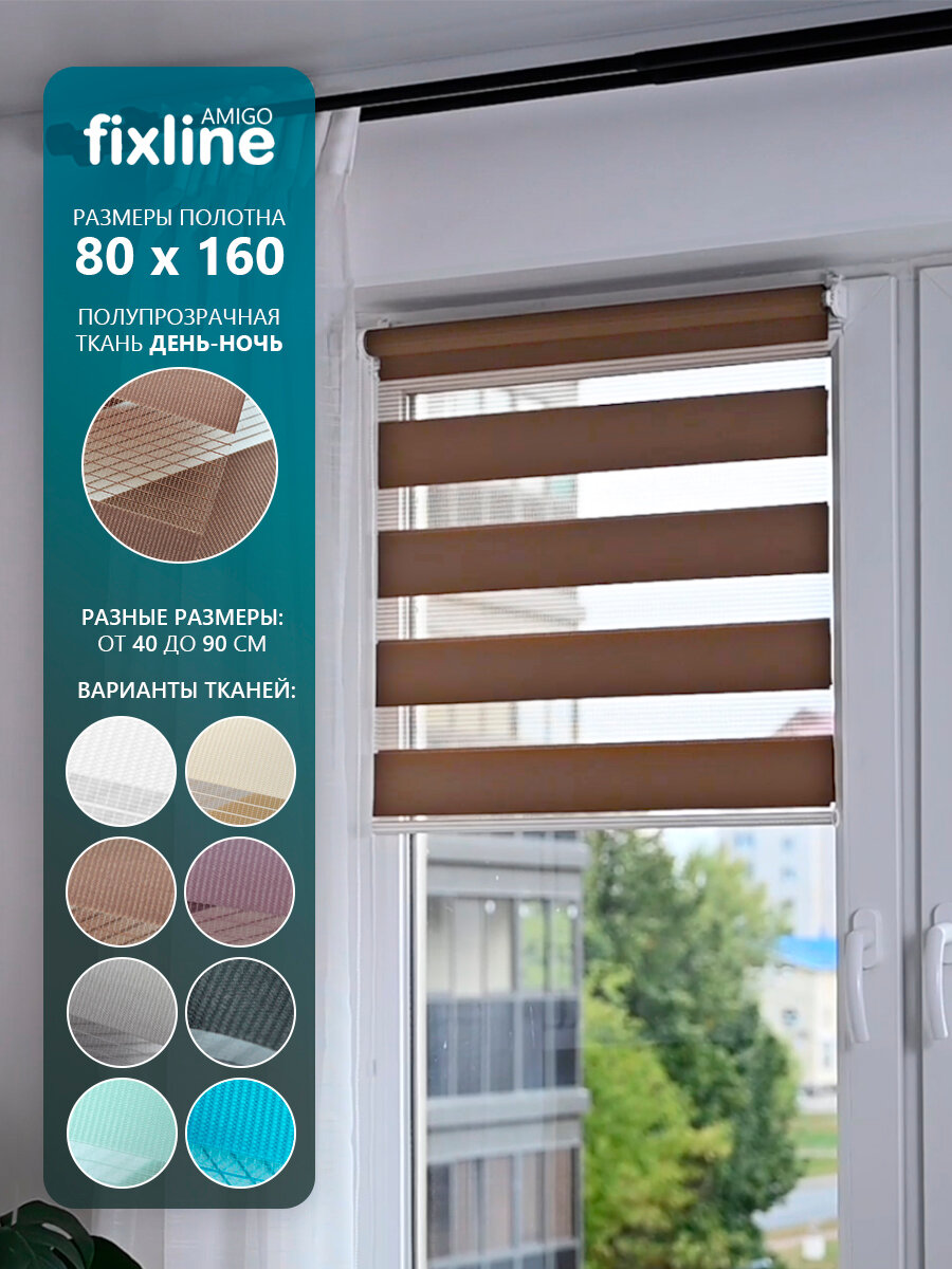 Рулонная штора на окна FixLine BASE День-Ночь 80х160 см, коричневый информация: