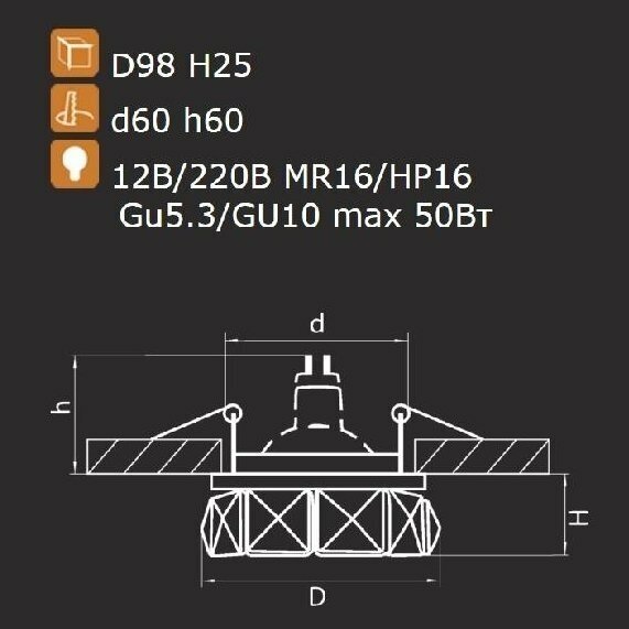 | Комплектация | Светильник - 1шт., патрон G5.3 |