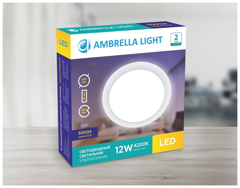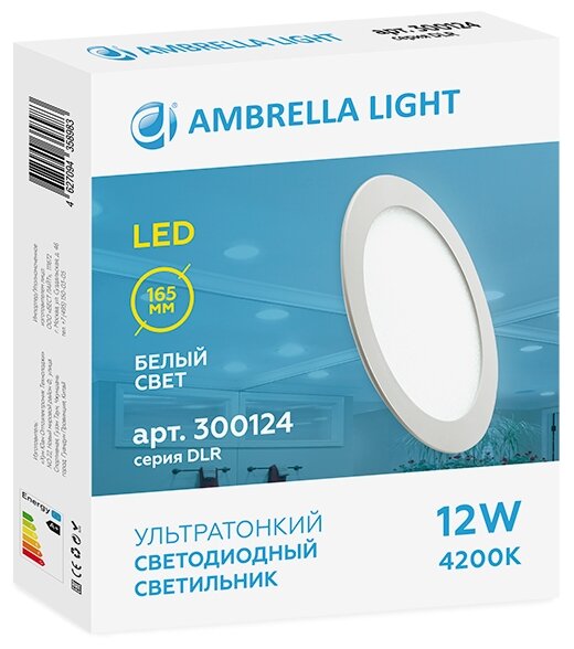Ультратонкая светодиодная панель Ambrella DLR 12W 4200K, Ø170мм информация: