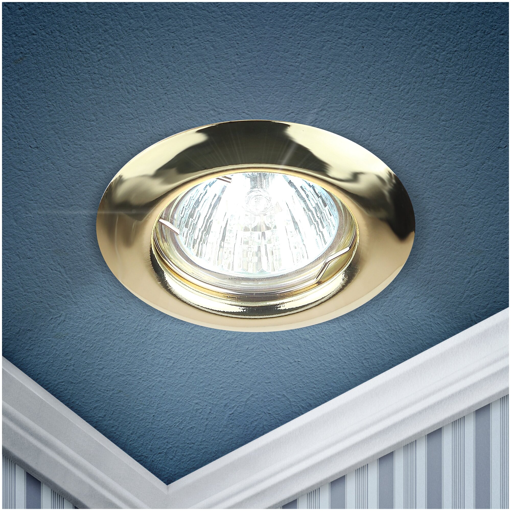 (6 шт.) Светильник встраиваемый точечный ЭРА ST1 GD, цоколь GU5.3, тип лампы MR16, напряжение 12 В, максимальная мощность лампы 50 Вт, ширина 80 мм, диаметр отверстия 60 мм, штампованная сталь, золото 724 ₽