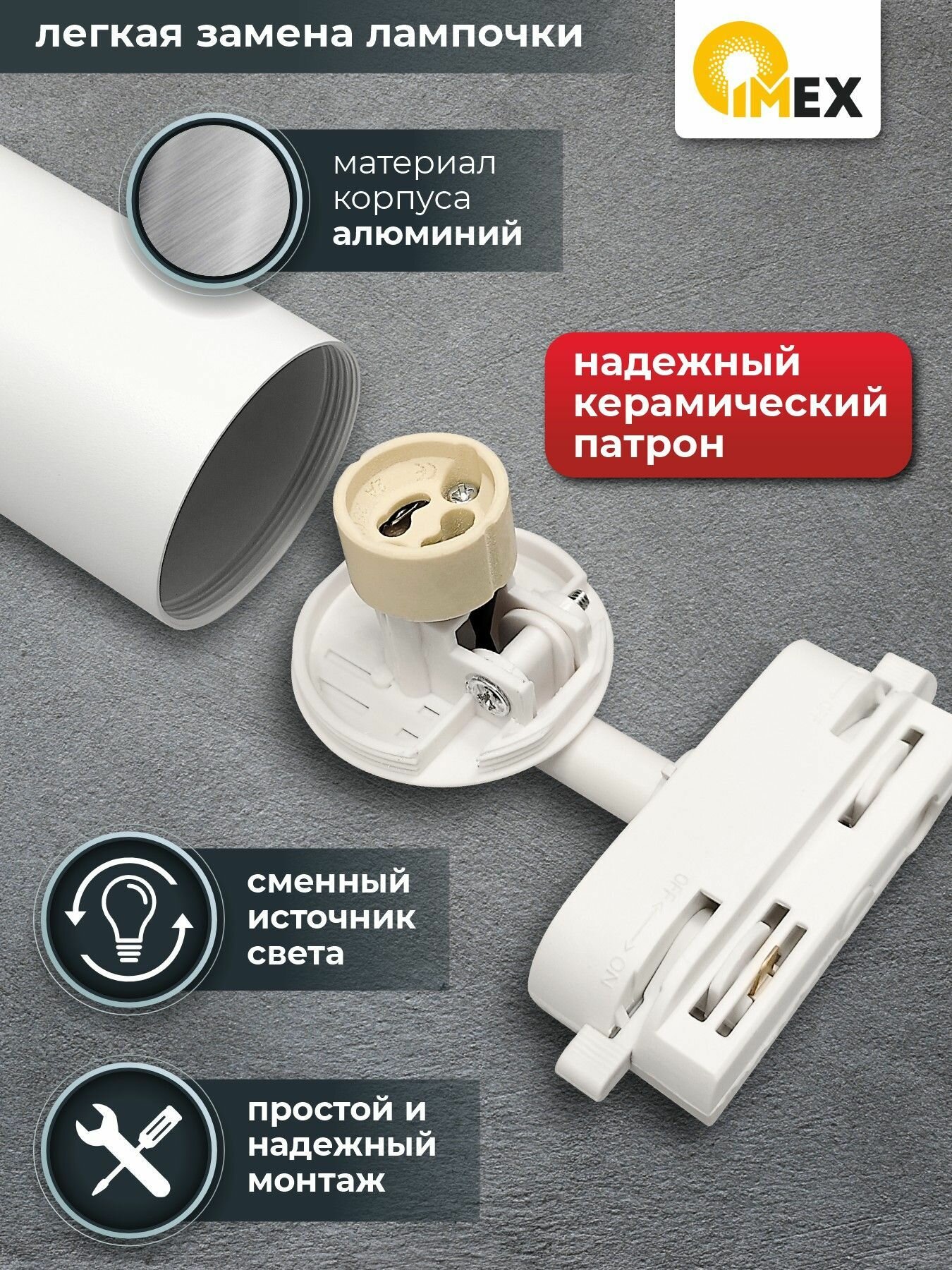 Светильник на однофазный трек IMEX, IL.0010.0018-WH, белый информация: