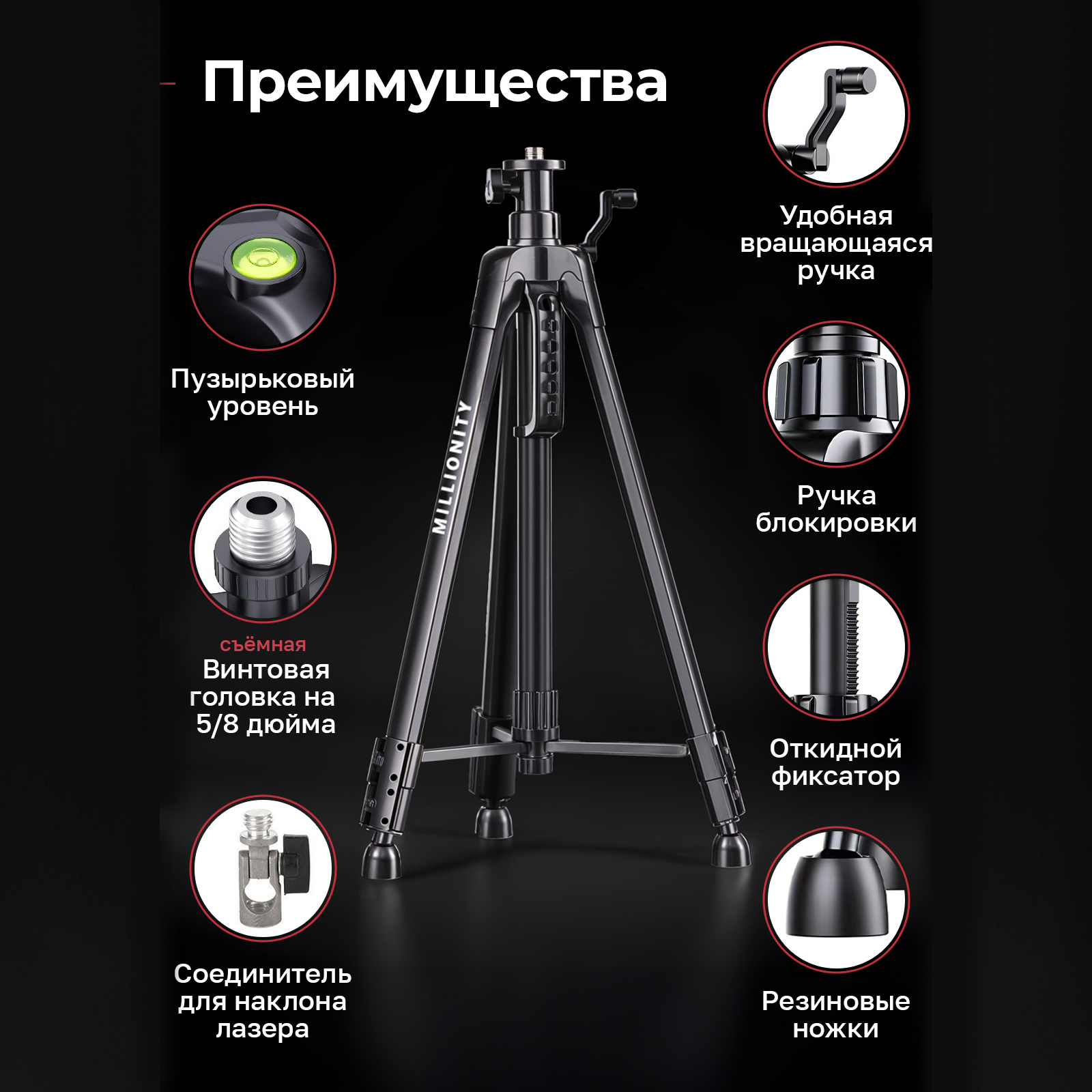 Штатив для лазерного уровня Millionity. Тренога металлическая. информация: