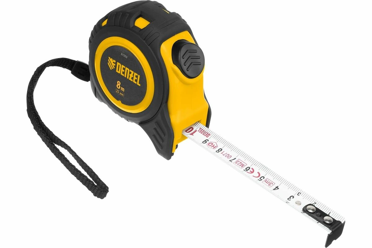 10 цен на Рулетка 8м х 25мм, обрезиненный корпус, автоматическая фиксация// Denzel