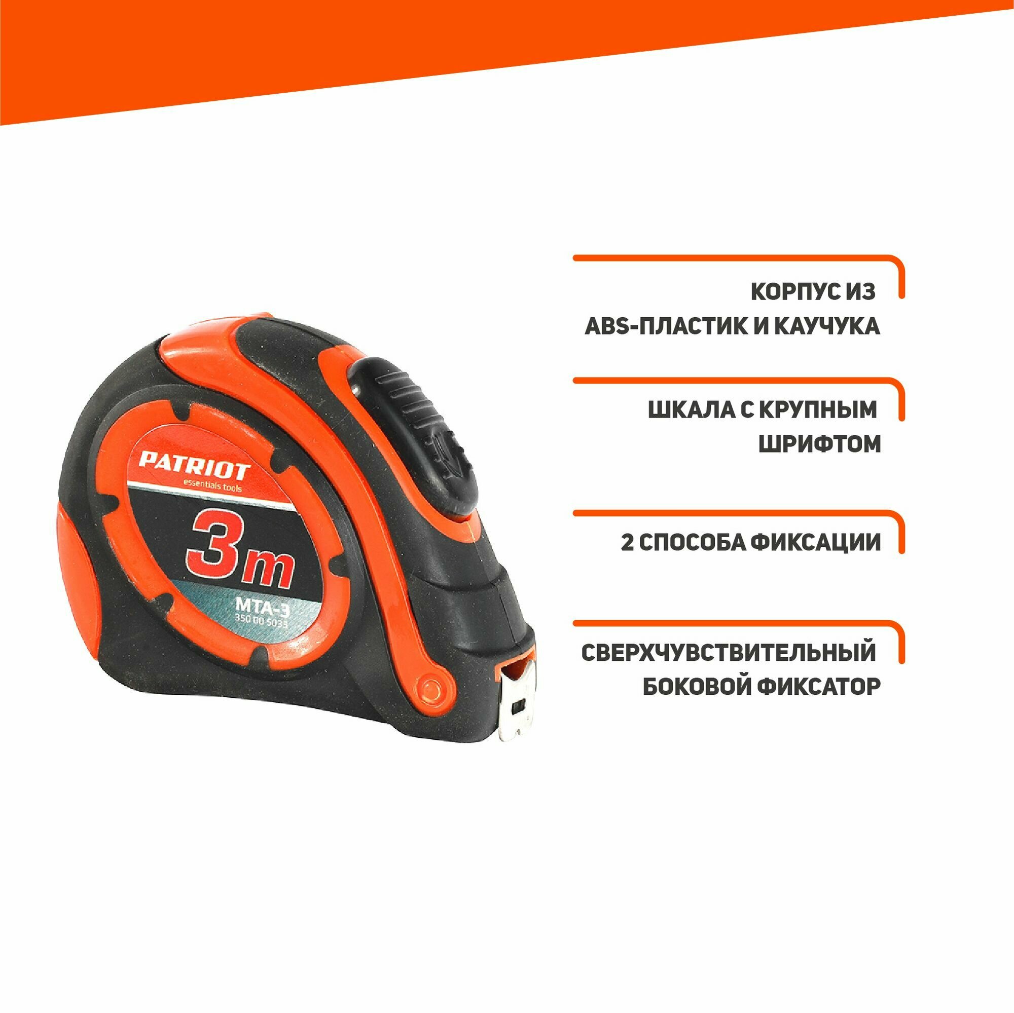 Отзывы на Рулетка Patriot MTA-3, автостоп, ударопрочный корпус, обрезиненная, 3м