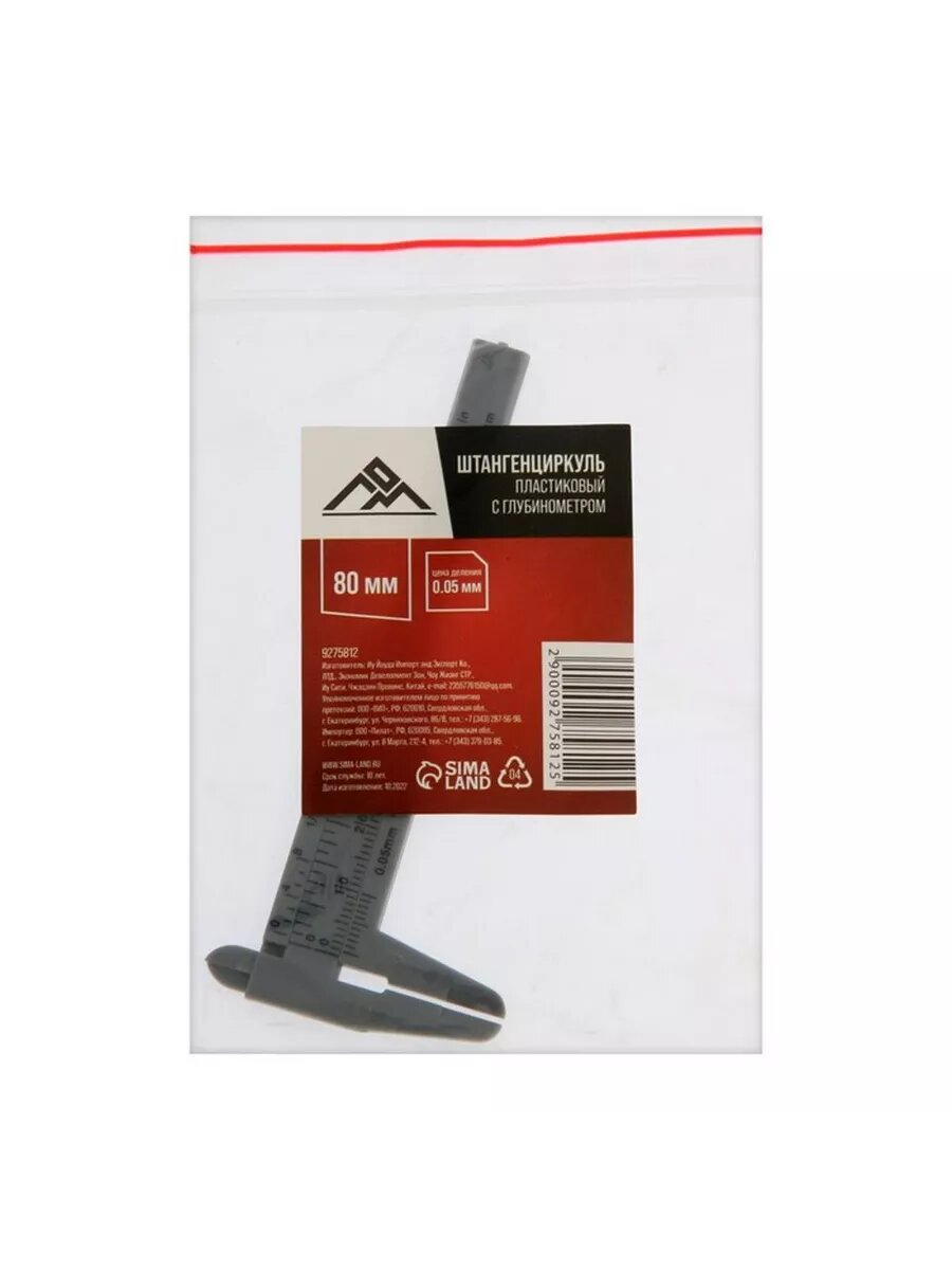 Штангенциркуль ЛОМ, с глубинометром, цена деления 0.1 мм, пластиковый, 80 мм информация: