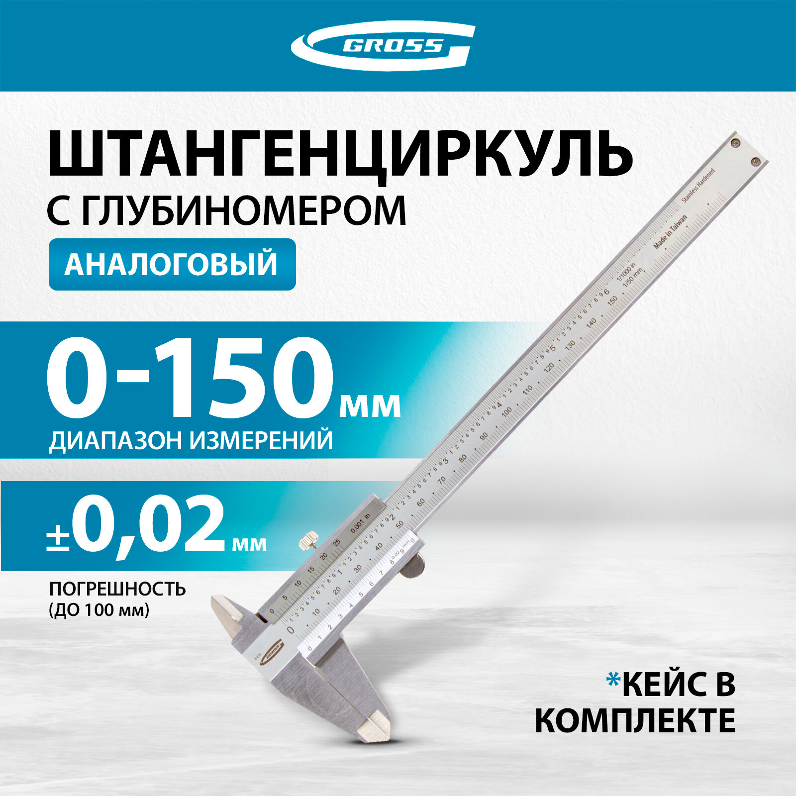 Отзывы на Штангенциркуль Gross 150 мм, 0, 02 мм, нержавеющая сталь, с глубиномером 31670