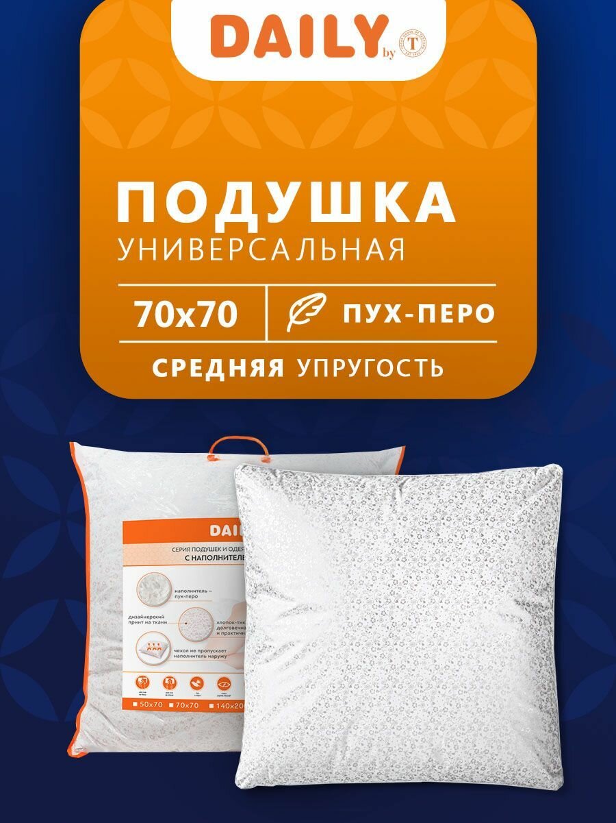 Daily by T Подушка "Легарт" хлопок, пух Уральского гуся, Средняя жесткость, 70x70 1-пр. информация: