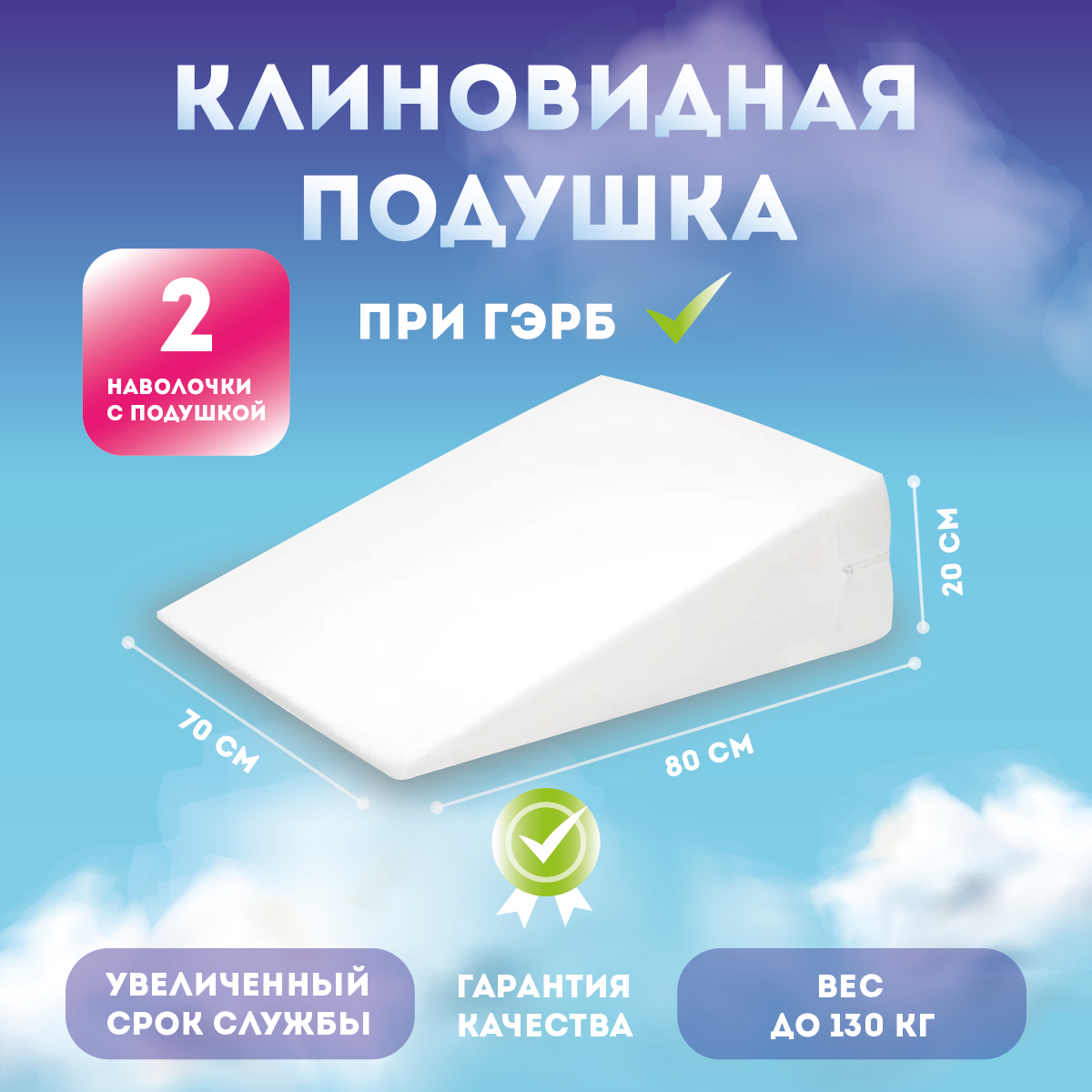 Клиновидная подушка ГЭРБ 80*70 + 1 запасная наволочка 3 200 ₽