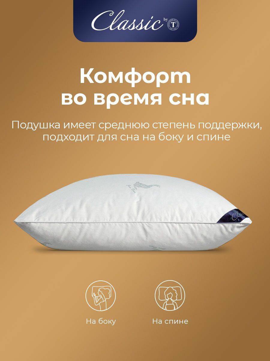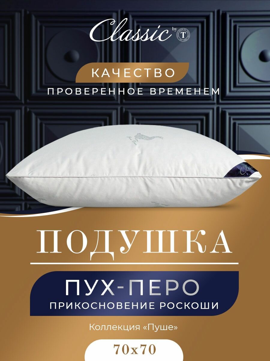 Classic by T Подушка "Пушэ" хлопок, пух Уральского гуся, Средняя жесткость, 70x70 1-пр. информация: