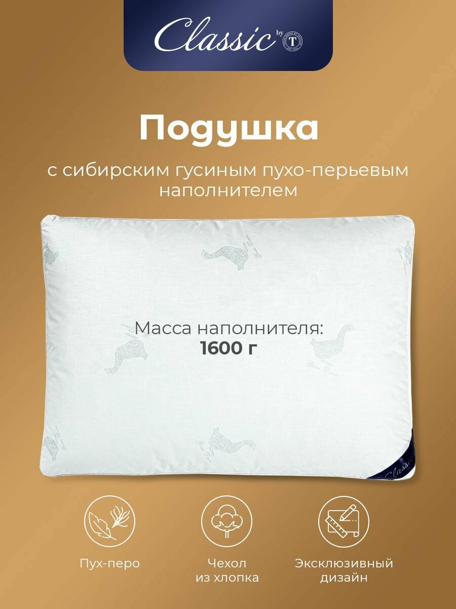 Classic by T Подушка "Пушэ" хлопок, пух Уральского гуся, Средняя жесткость, 50x70 1-пр. информация: