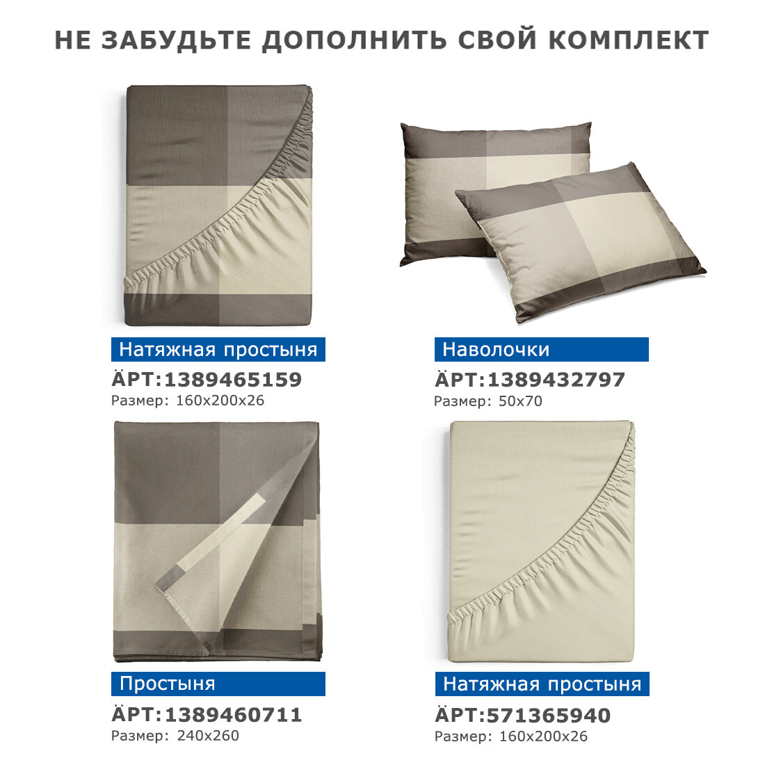 Комплект постельного белья 1 спальный YERRNA, наволочка 50х70 1шт, перкаль, серо-бежевый, с2081шв/213432 1 476 ₽
