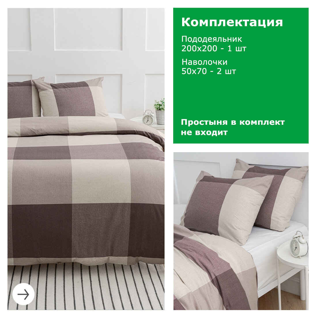 Отзывы на Комплект постельного белья, 2 спальный YERRNA, наволочки 50х70 2шт, перкаль, серо-бежевый, с2082шв/213432