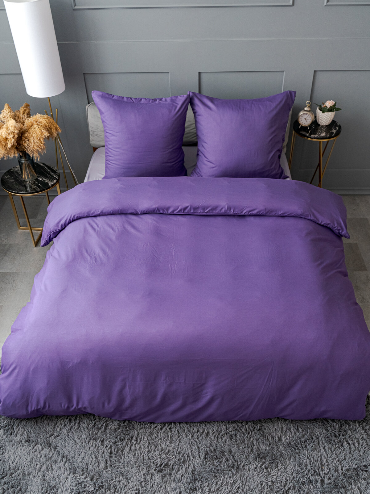 Постельное белье евро Павлина Манетти полисатин однотонный, (лиловый/серый) S23 1 564 ₽
