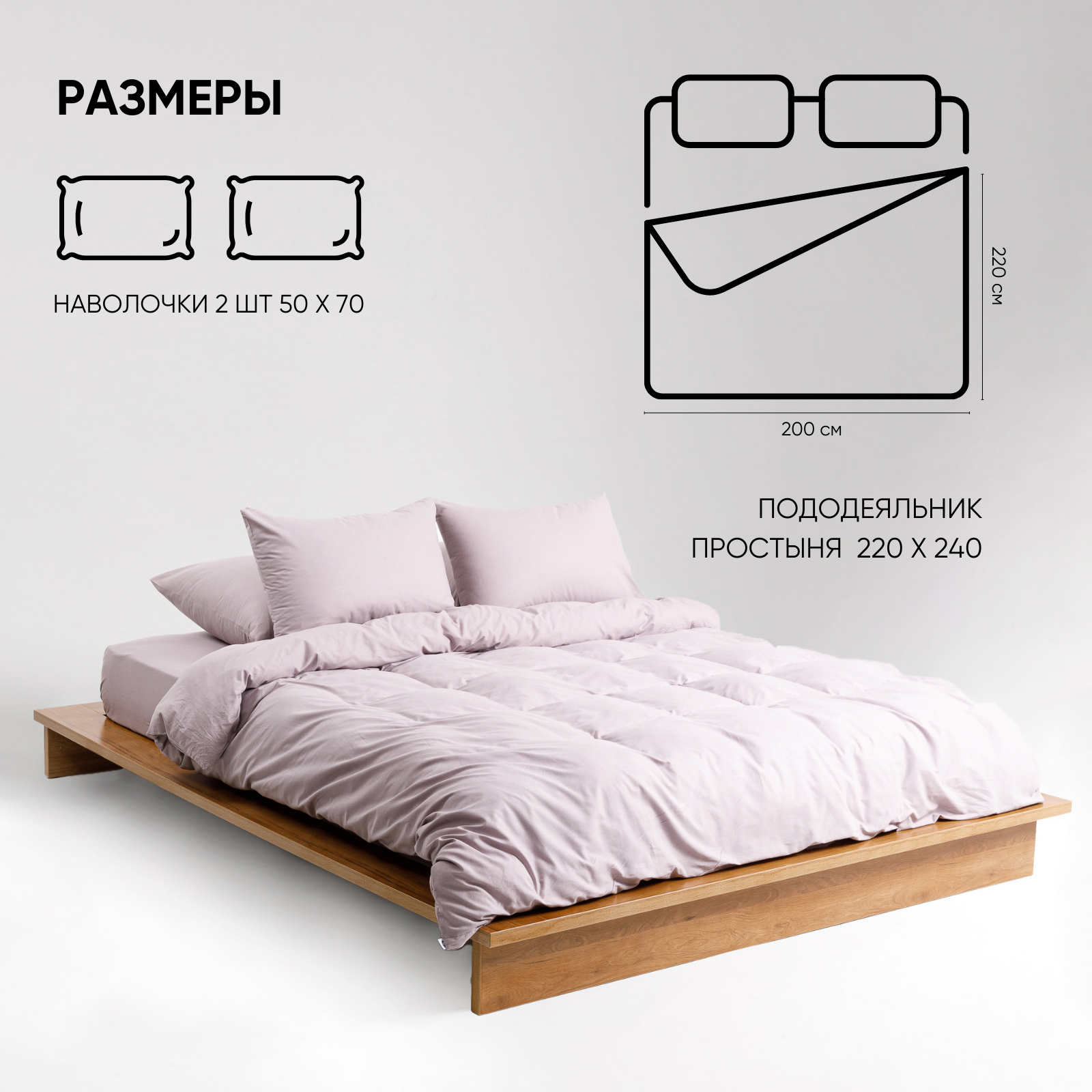 Постельное белье на молнии однотонное Urban Family (аналог икеа), Кварц, евро, наволочки на молнии 50х70, 100% хлопок, перкаль информация: