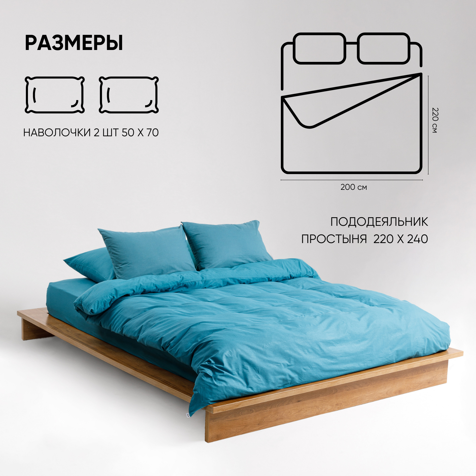 Постельное белье на молнии однотонное Urban Family (аналог икеа), Темно-бирюзовый, евро, наволочки на молнии 70х70, 100% хлопок, перкаль 2 830 ₽