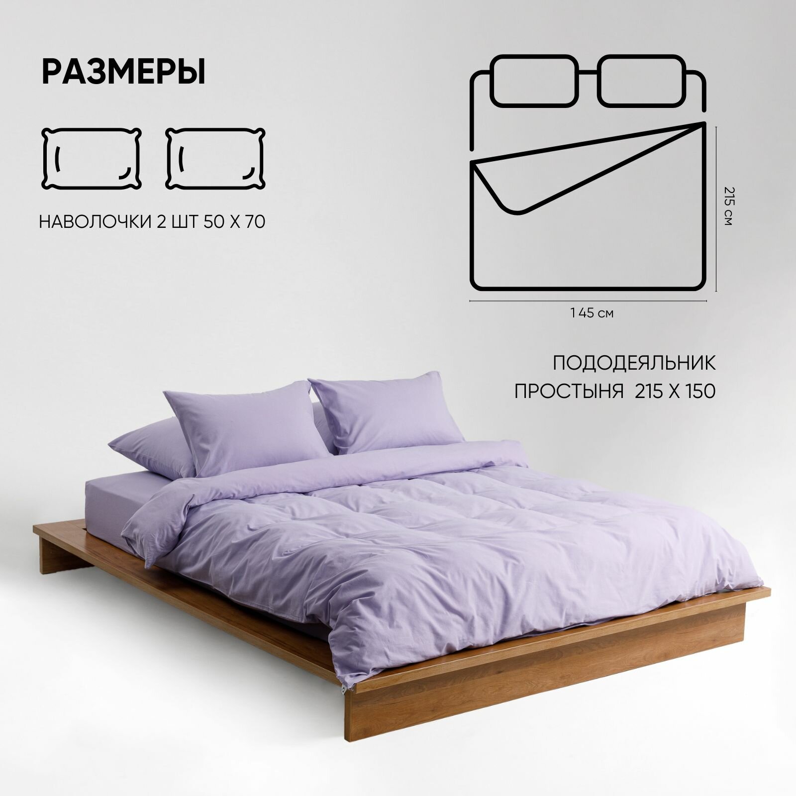 Постельное белье на молнии однотонное Urban Family (аналог икеа), Лавандовый, 1 5 спальное, наволочки на молнии 50х70, 100% хлопок, перкаль информация:
