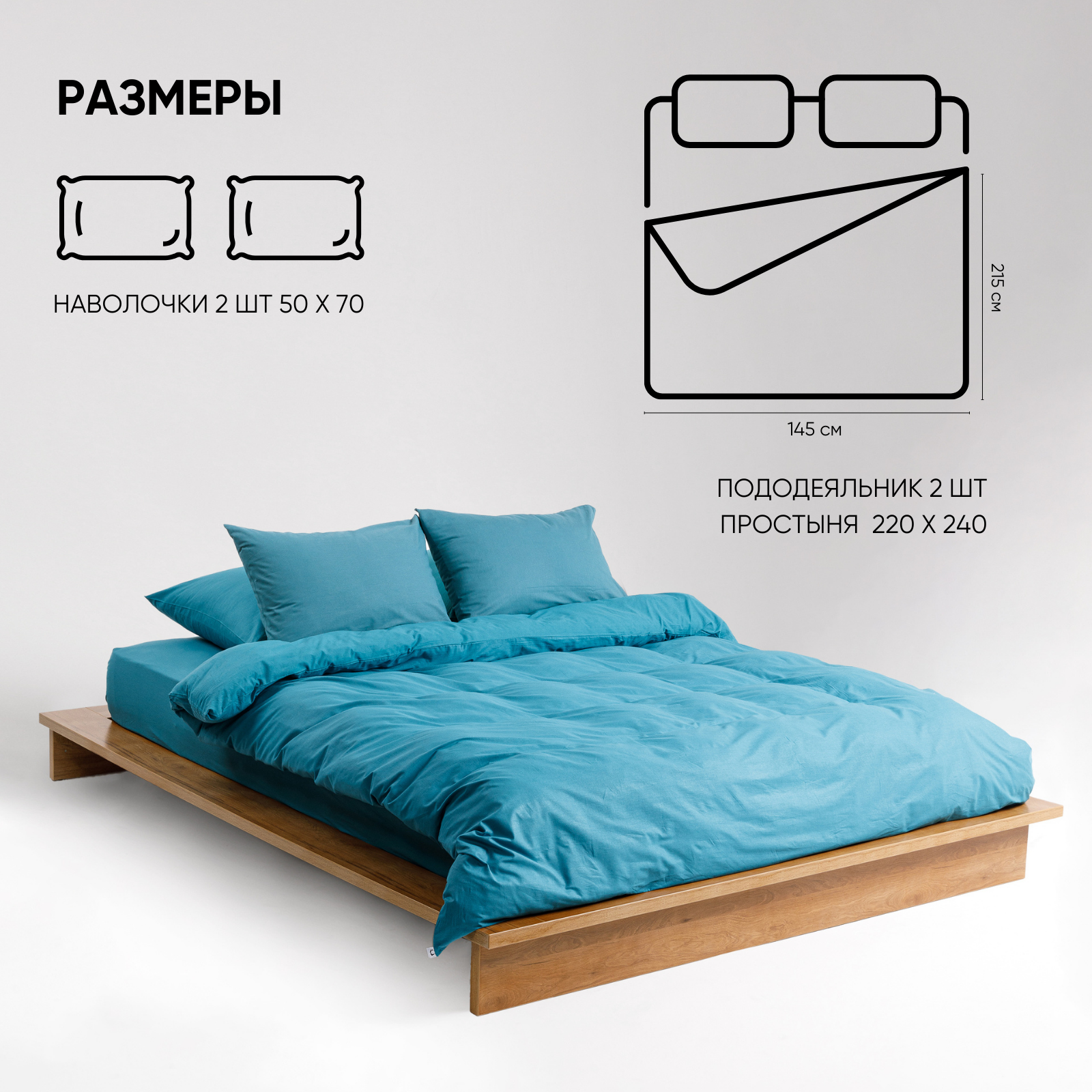 Постельное белье на молнии однотонное Urban Family (аналог икеа), Темно-бирюзовый, евро, наволочки на молнии 70х70, 100% хлопок, перкаль 2 830 ₽