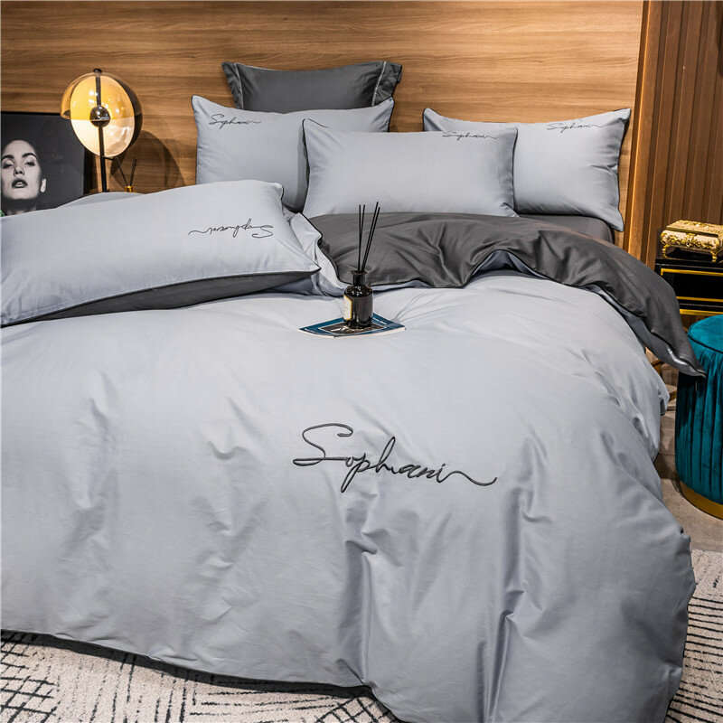 Постельное белье 15 спальное/ полуторный серый, темно-серый Mency Сатин, Жатка простынь 160x215 информация: