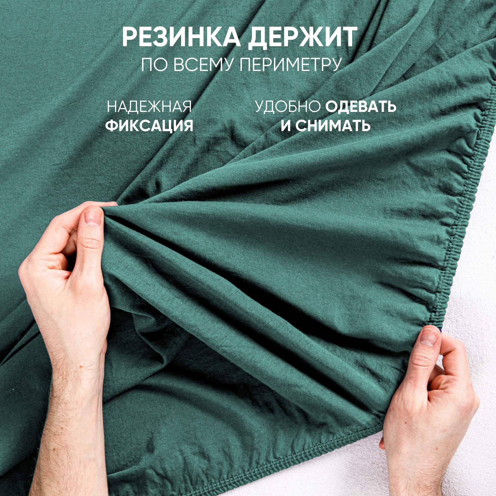 Простынь на резинке однотонная 160х200 см Ночь Нежна Морская волна, трикотажная, 100% хлопок, ткань кулирка 760 ₽