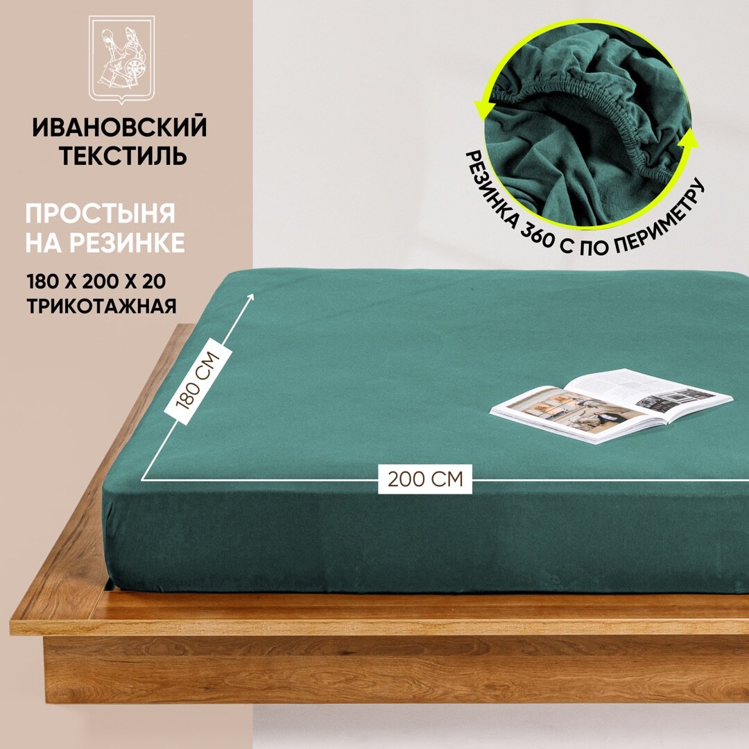 Простынь на резинке однотонная 180х200 см Ночь Нежна Морская волна, трикотажная, 100% хлопок, ткань кулирка 830 ₽