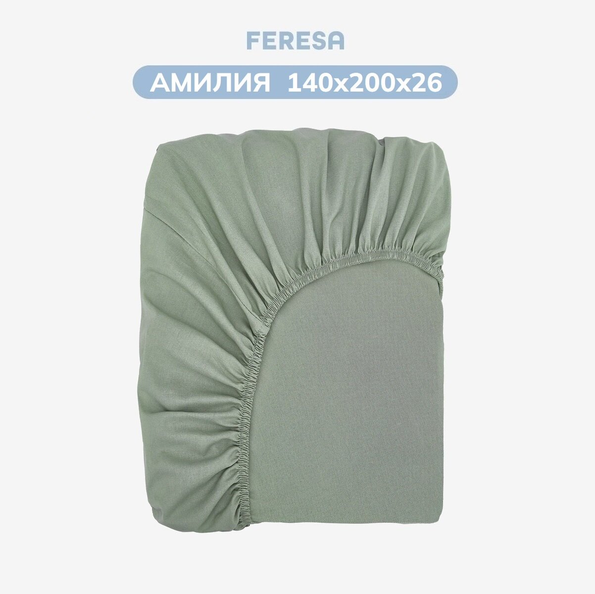 Простынь на резинке 160х200 см, поплин, серо-зеленый, Feresa Hygge амилия/DVALA, аналог икеа 1 645 ₽