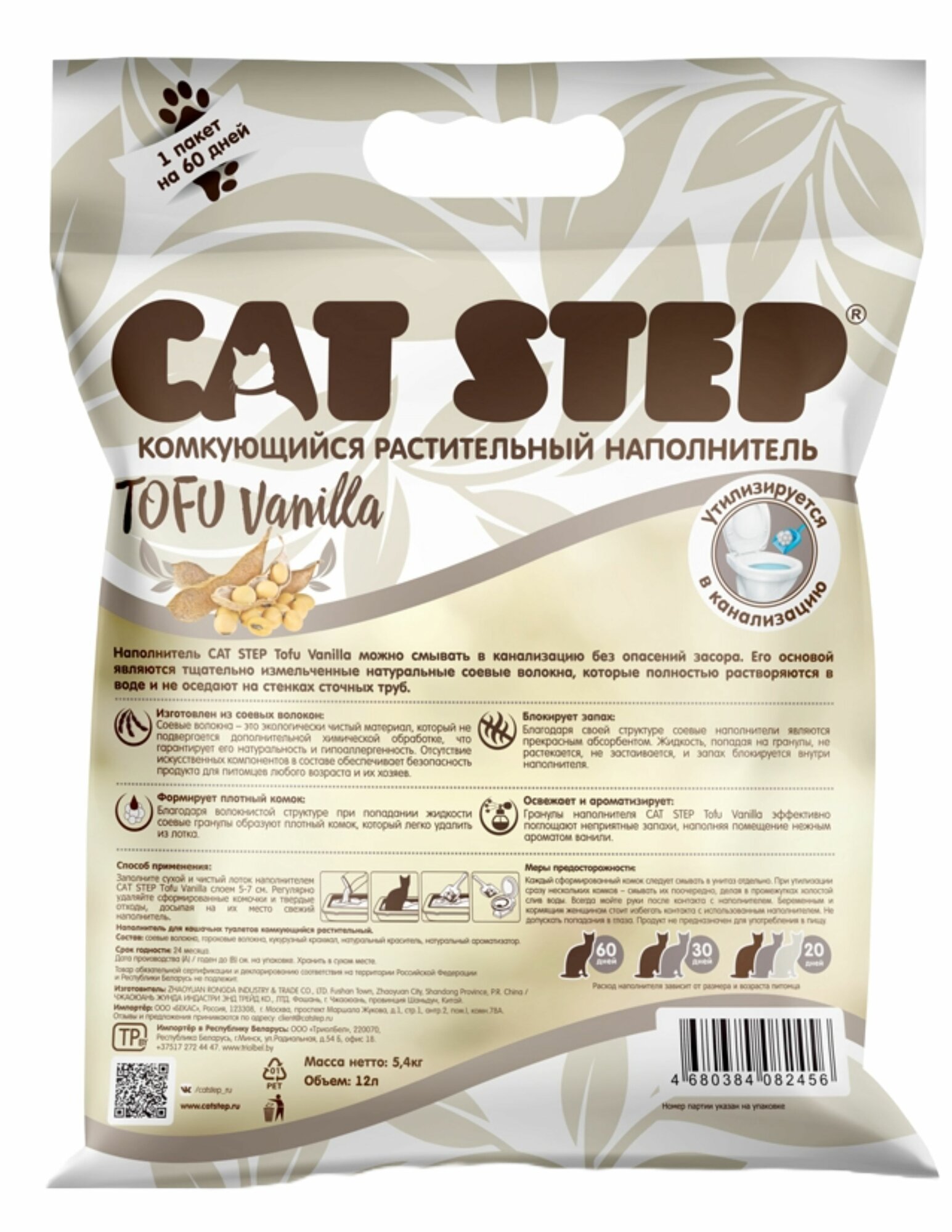Наполнитель комкующийся растительный CAT STEP Tofu Vanilla, 12 л информация: