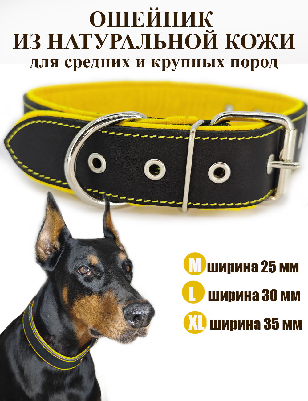Кожаный ошейник Dober-Крут для собак средних пород информация: