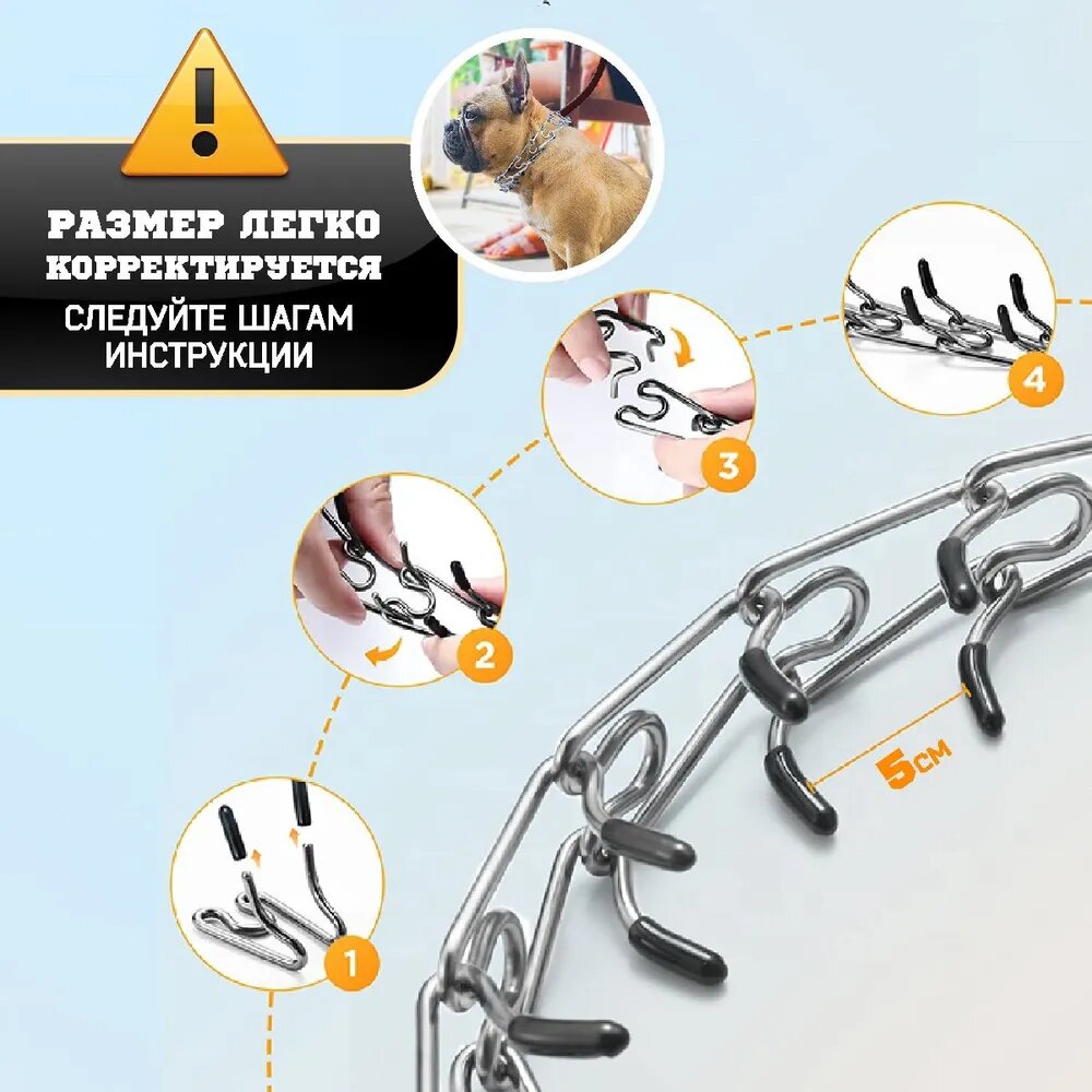Строгий ошейник для активных собак из нержавеющей стали, до 50 см 708 ₽