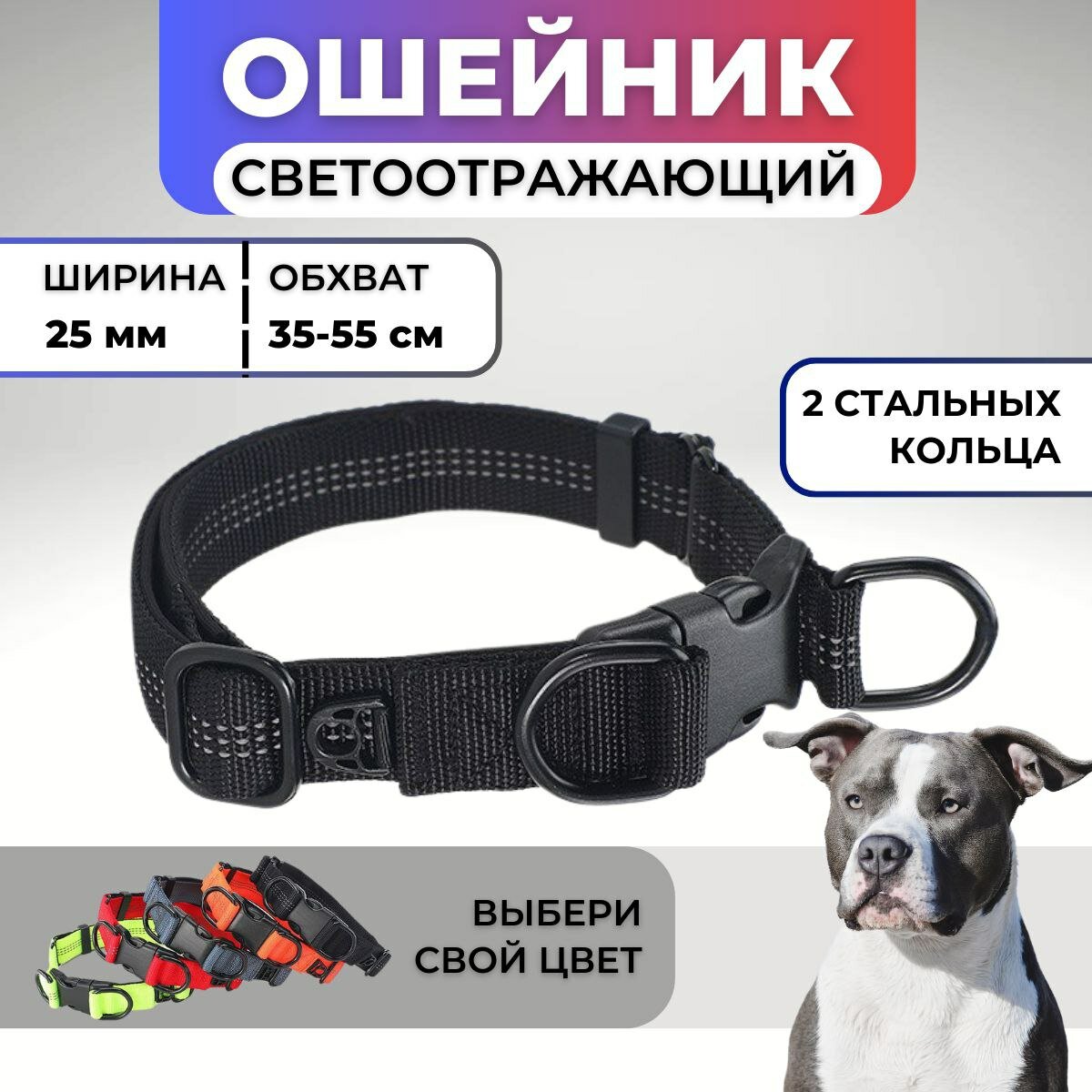 Ошейник для собак регулируемый светоотражающий на фастексе информация: