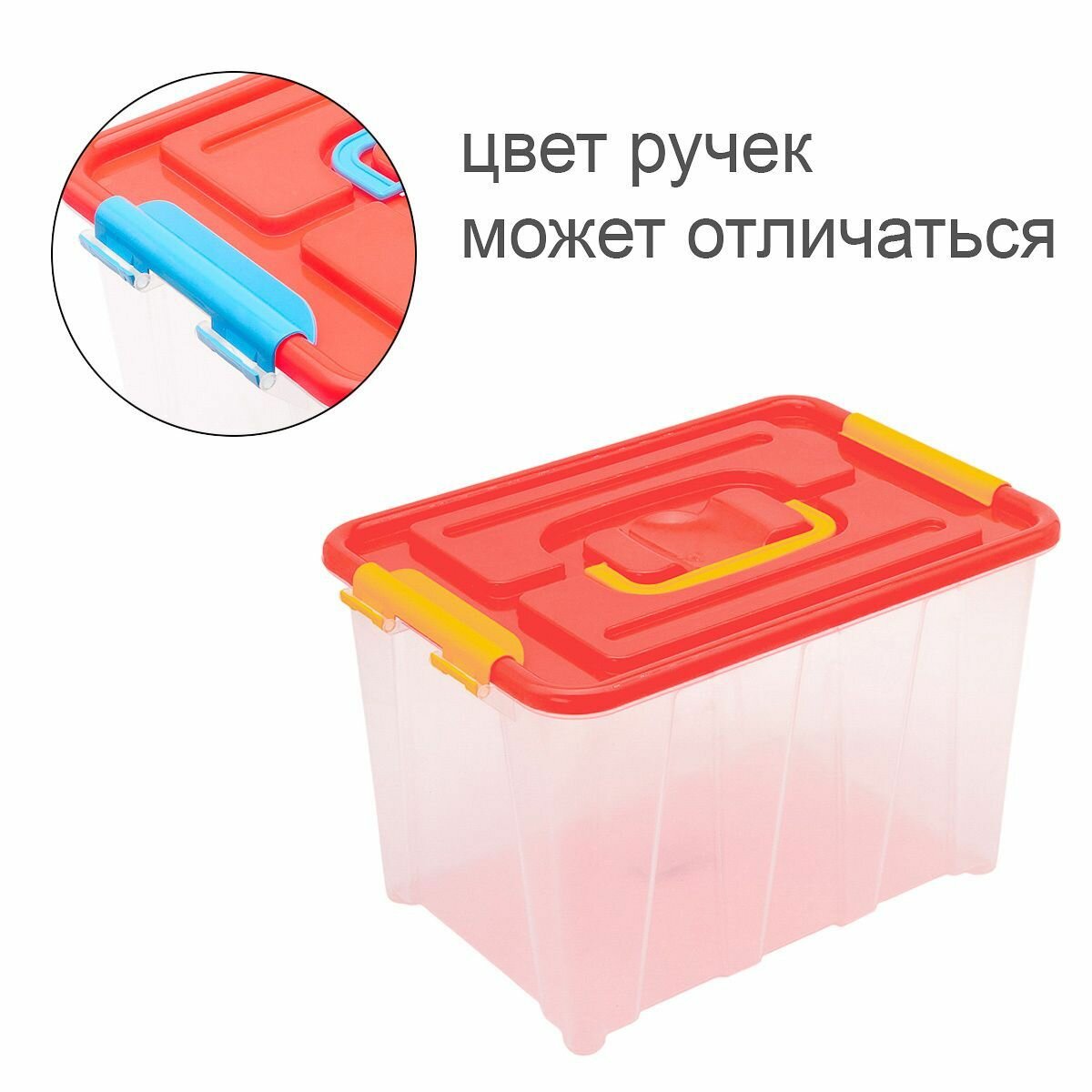 | Особенности | прозрачный / ручки для переноски / с крышкой / складной |