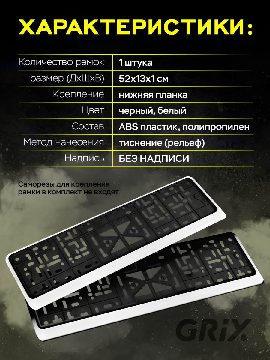 Grix Рамка автомобильная для госномера без надписи белая 1 шт. информация: