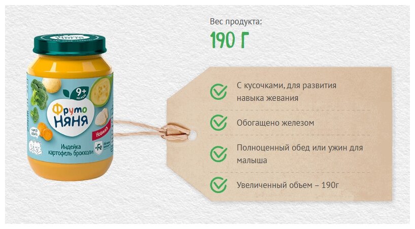 Пюре ФрутоНяня индейка-картофель-брокколи, 190г информация: