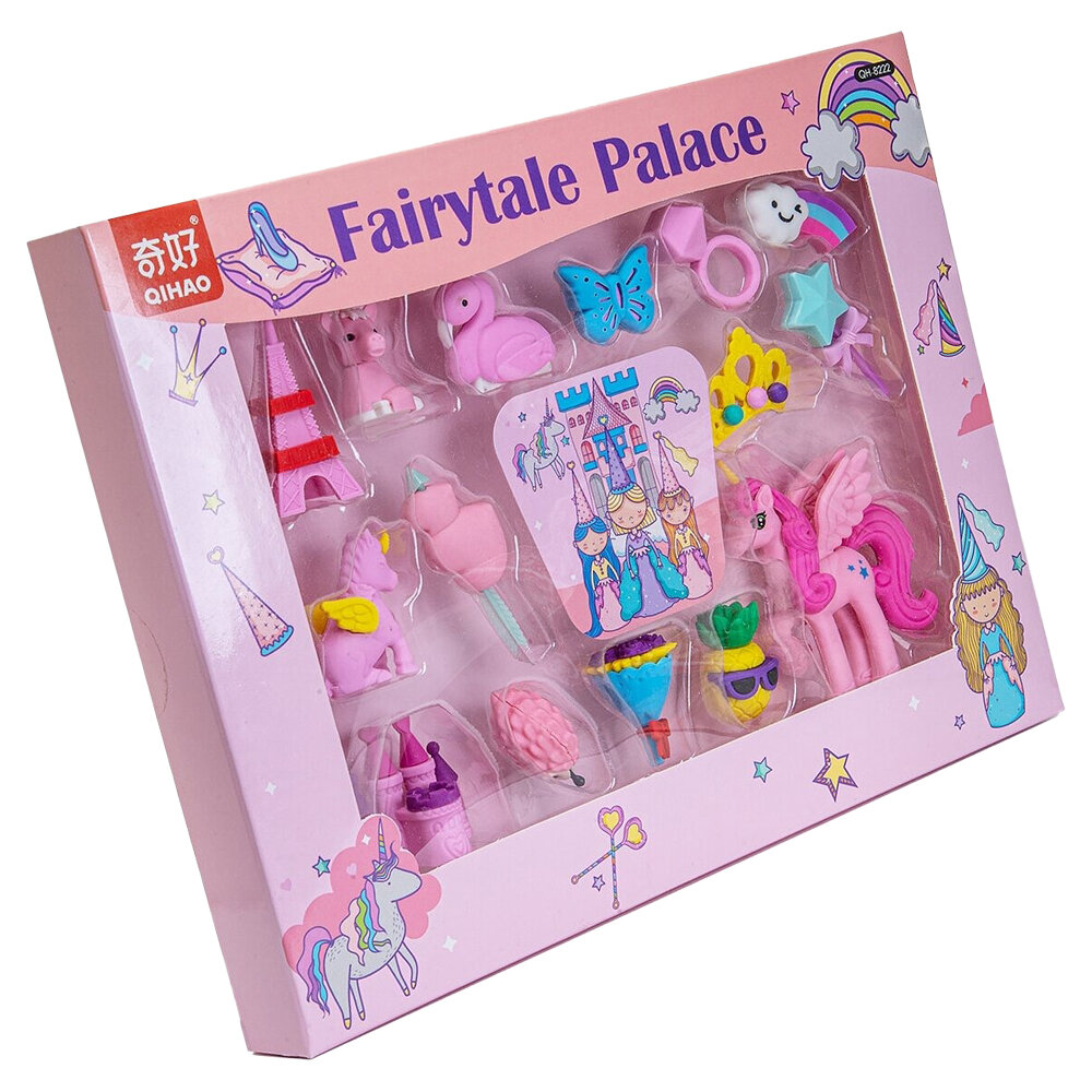 10 цен на Набор ластиков разборных 15 штук, Qihao "Fairytale Palace" в коробке, фигурки с тематикой фей, школьные стерки для детей