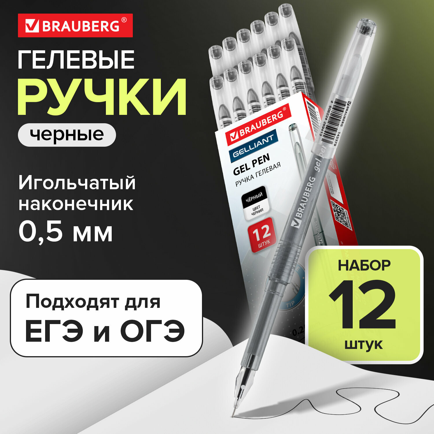 Ручка гелевая BRAUBERG DIAMOND, комплект 12 штук, черная, узел 0,5 мм, линия письма 0,25 мм, 880205 информация: