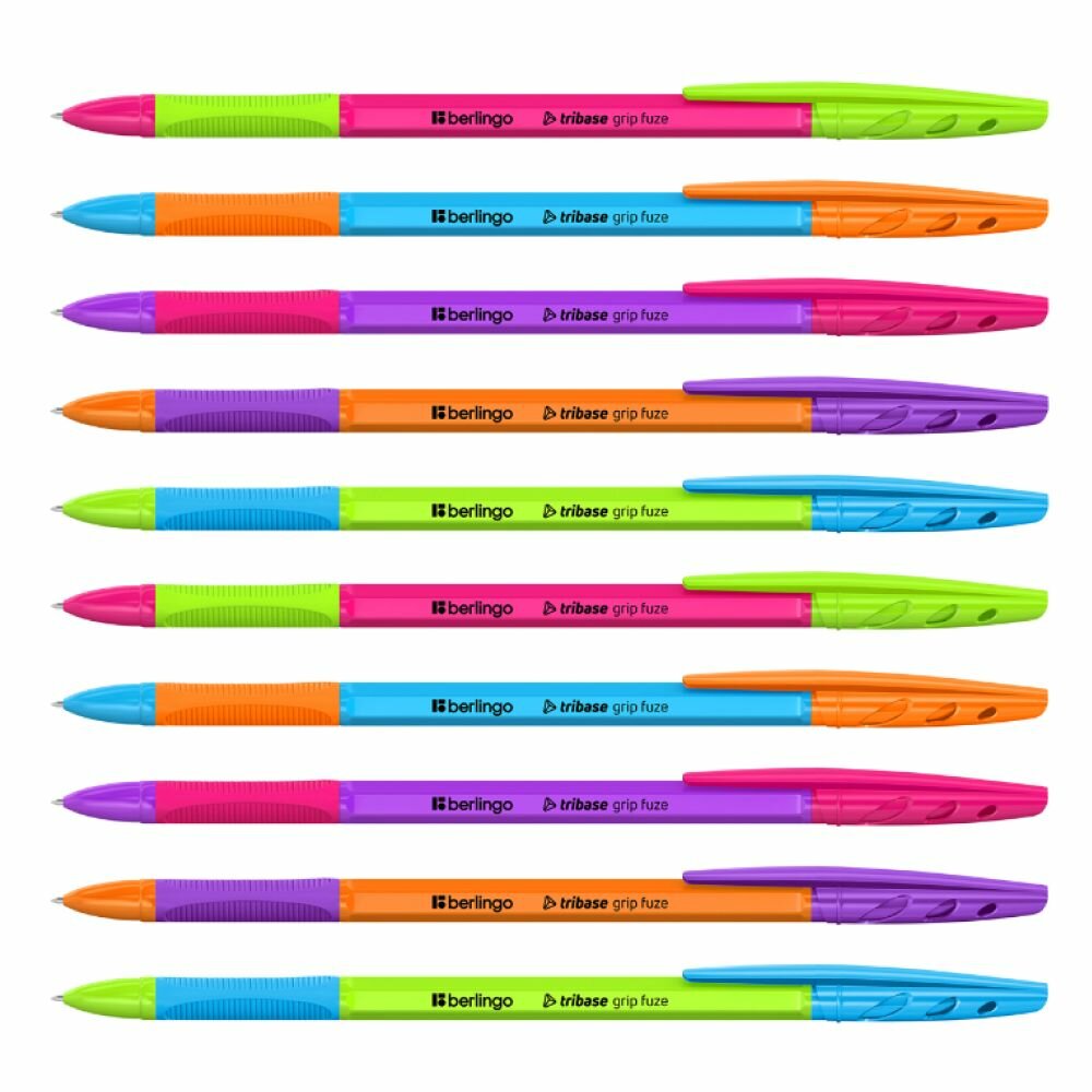 Набор 10 шт. - Ручка шариковая Berlingo "Tribase grip fuze" синяя, 0,7 мм, корпус ассорти, с грипом CBp_70968 390 ₽