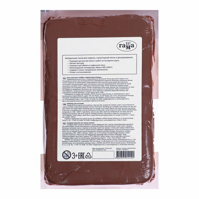 Отзывы на 4 шт. Глина натуральная для лепки 1500 г, цвет терракотовый, Гамма "Хобби", (подходит для обжига), вакуумированная, /Испания/