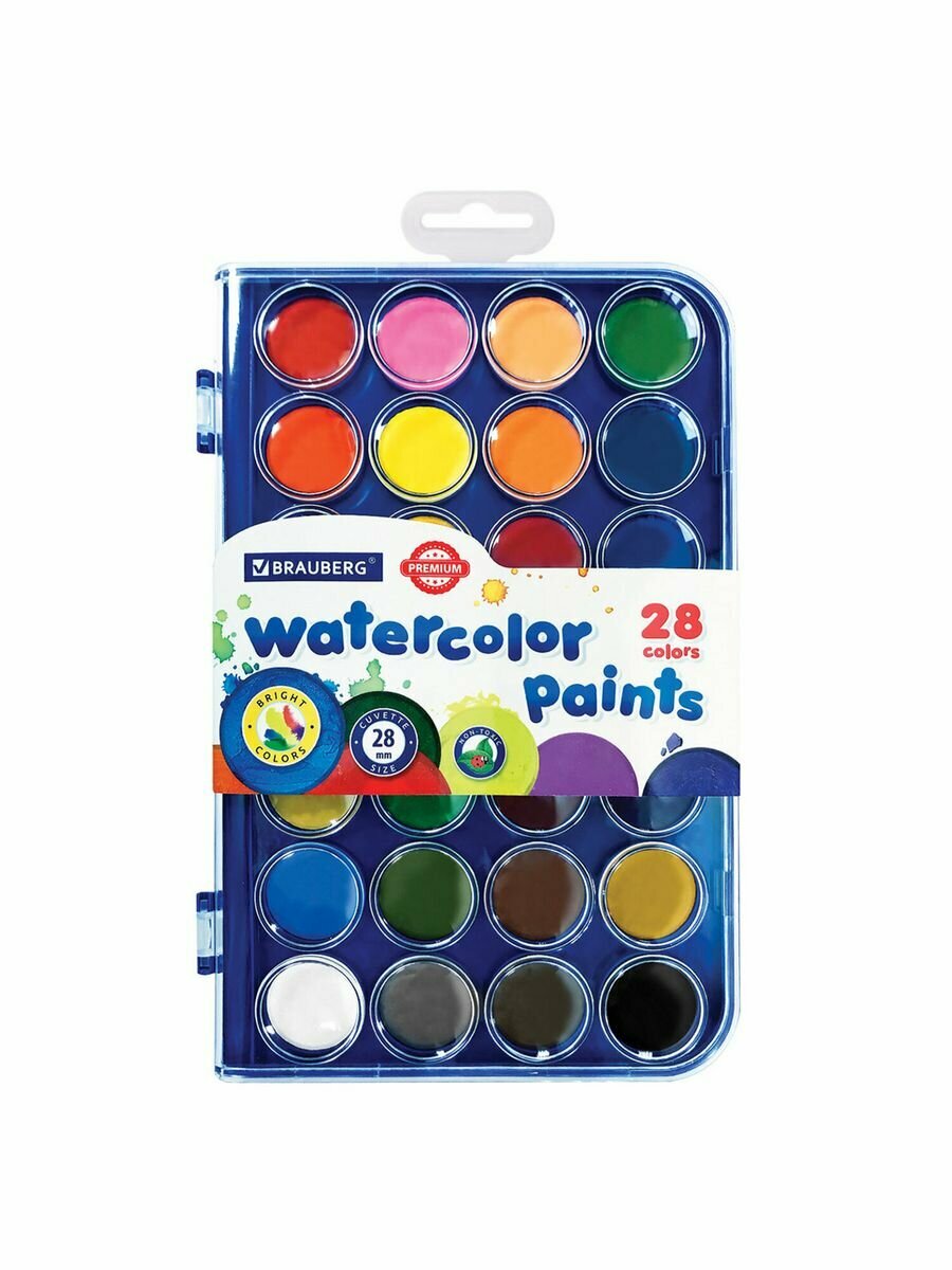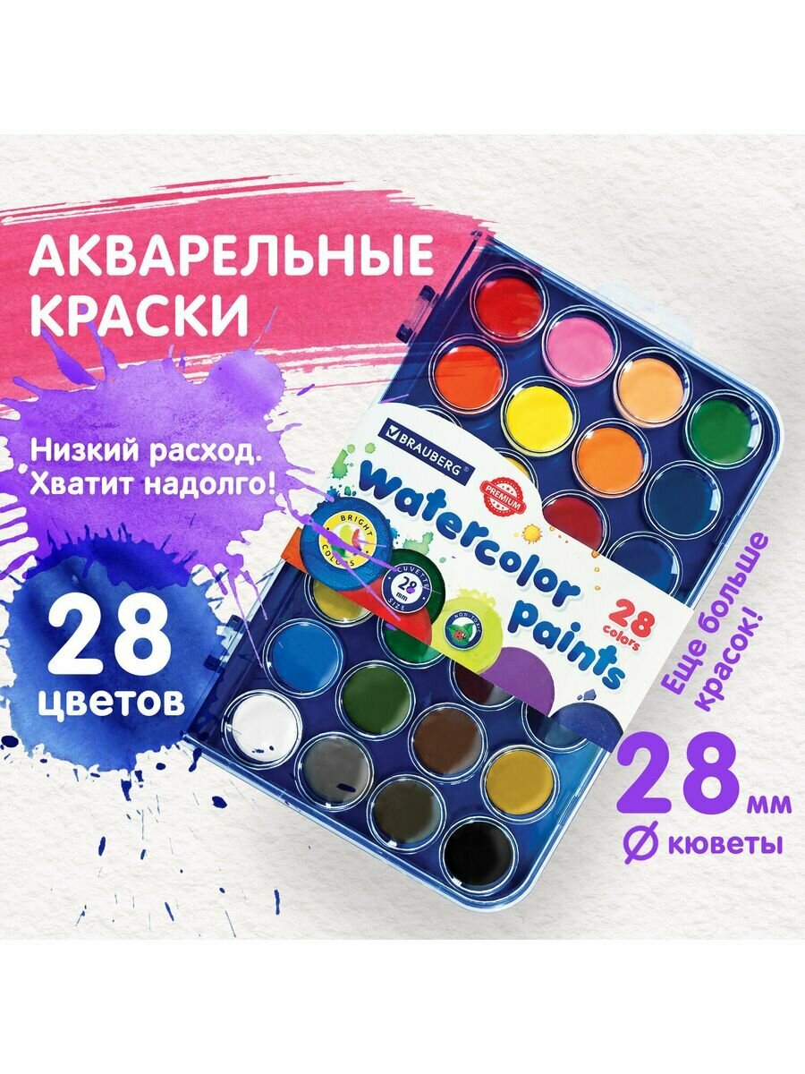 Набор акварельных красок Brauberg PREMIUM, кюветы диаметром 28 мм, 28 цветов информация: