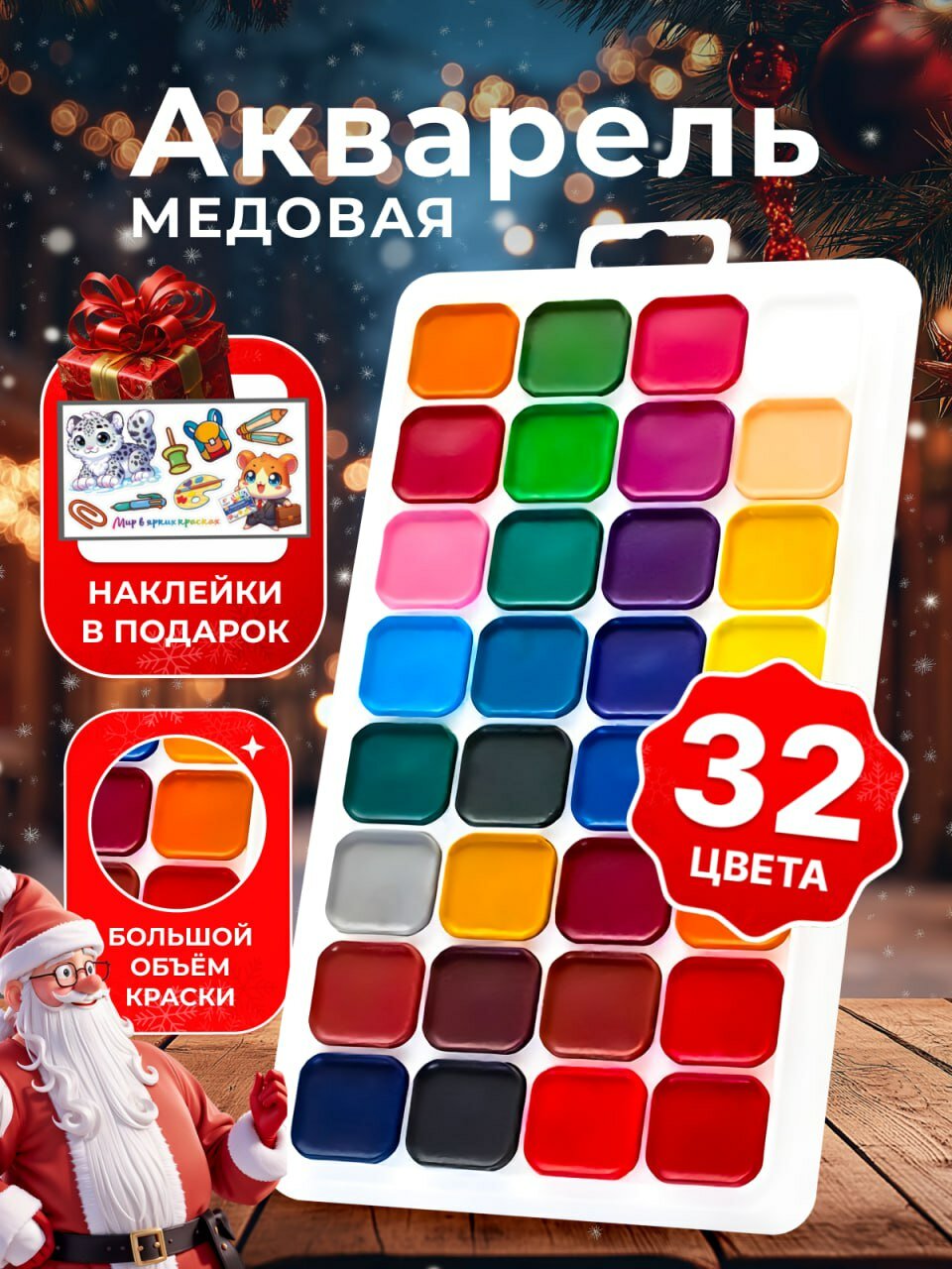 Акварель медовая "Классика" - 32 цвета, без кисти. 269 ₽