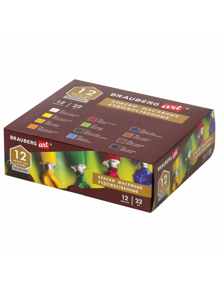 Краски масляные художественные Brauberg Art Premiere, 12 цветов по 22 мл, в тубах (191458)