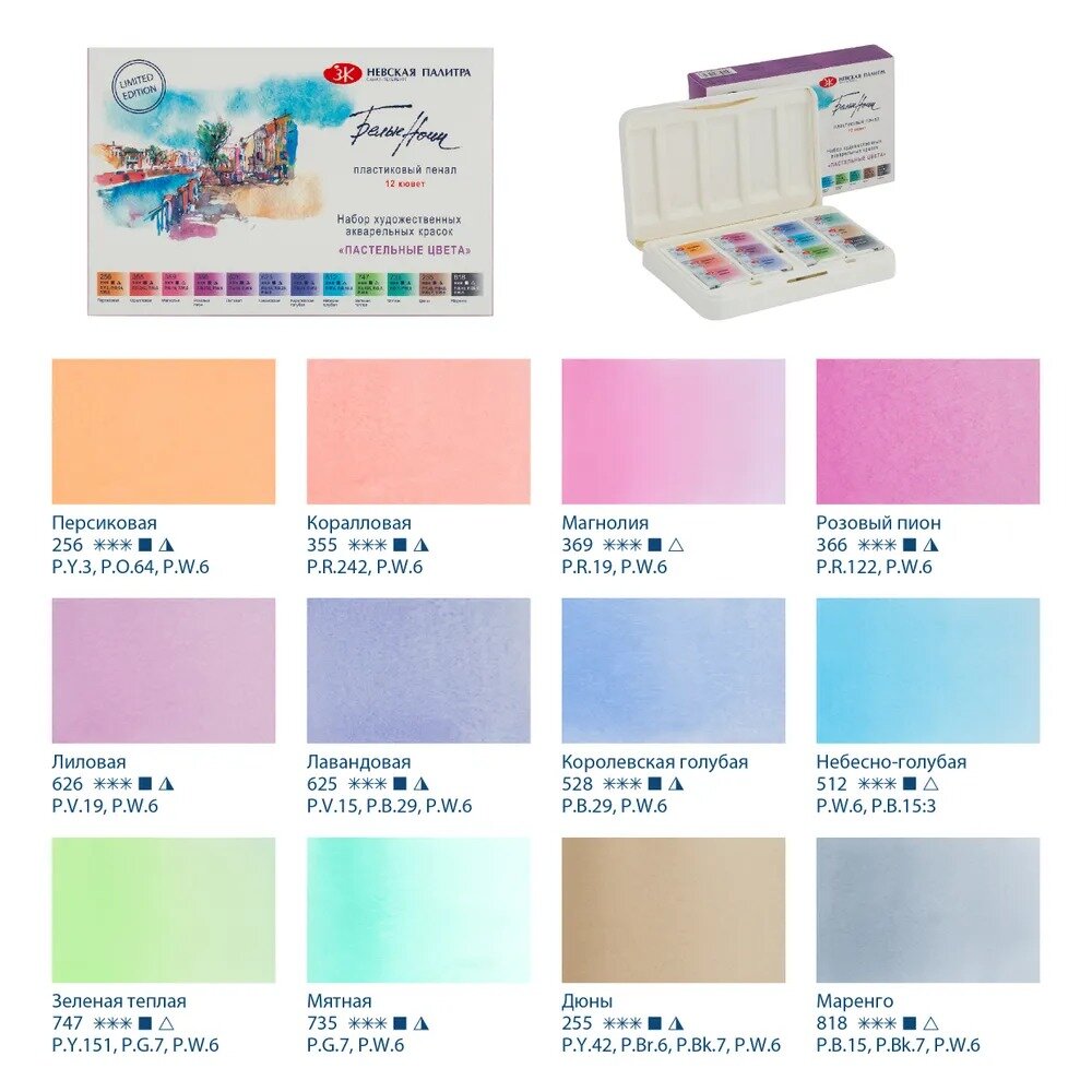 Невская Палитра Набор акварели "Белые Ночи", Пастельные цвета, 12 цветов в кюветах, пластик информация:
