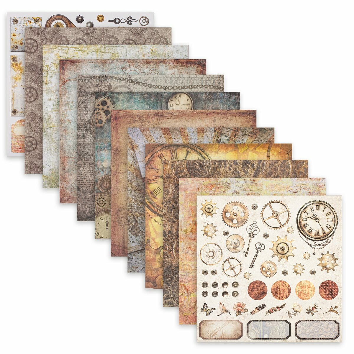 10 цен на Набор бумаги для скрапбукинга Остров сокровищ "Стимпанк", двусторонняя, 12л, 30x30см, 12 дизайнов, 180 г/м2, 3 уп. (662769)