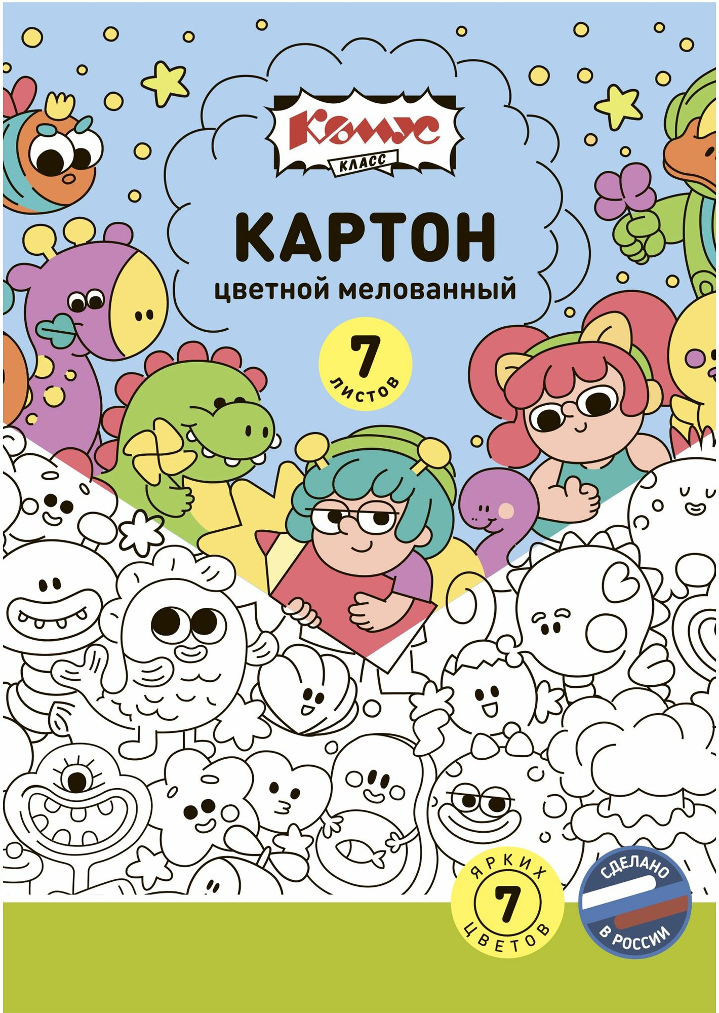 Картон цветной Комус Класс Миники 7л 7цв А4 мелован.папка информация: