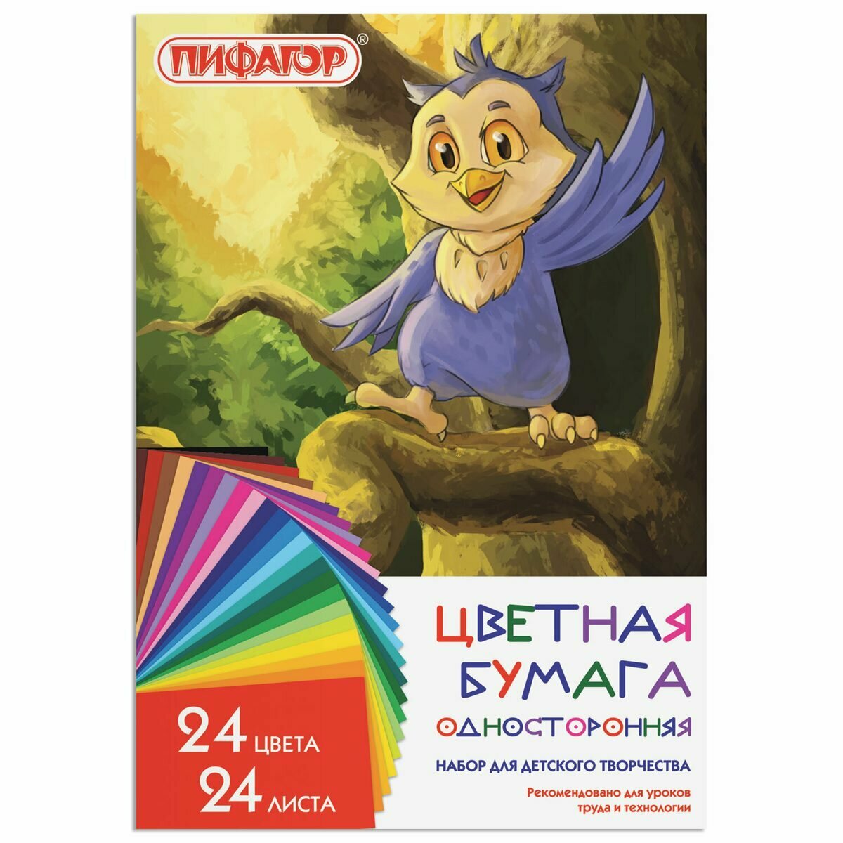 Бумага цветная Пифагор "Совенок" (24 листа, 24 цвета, А4, 200х280мм) (128003), 60 уп. информация: