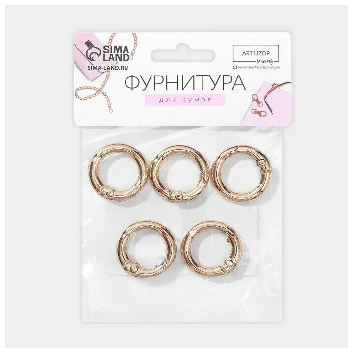 10 цен на Кольцо-карабин, d - 13/20 мм, толщина - 3,5 мм, 5 шт, цвет золотой