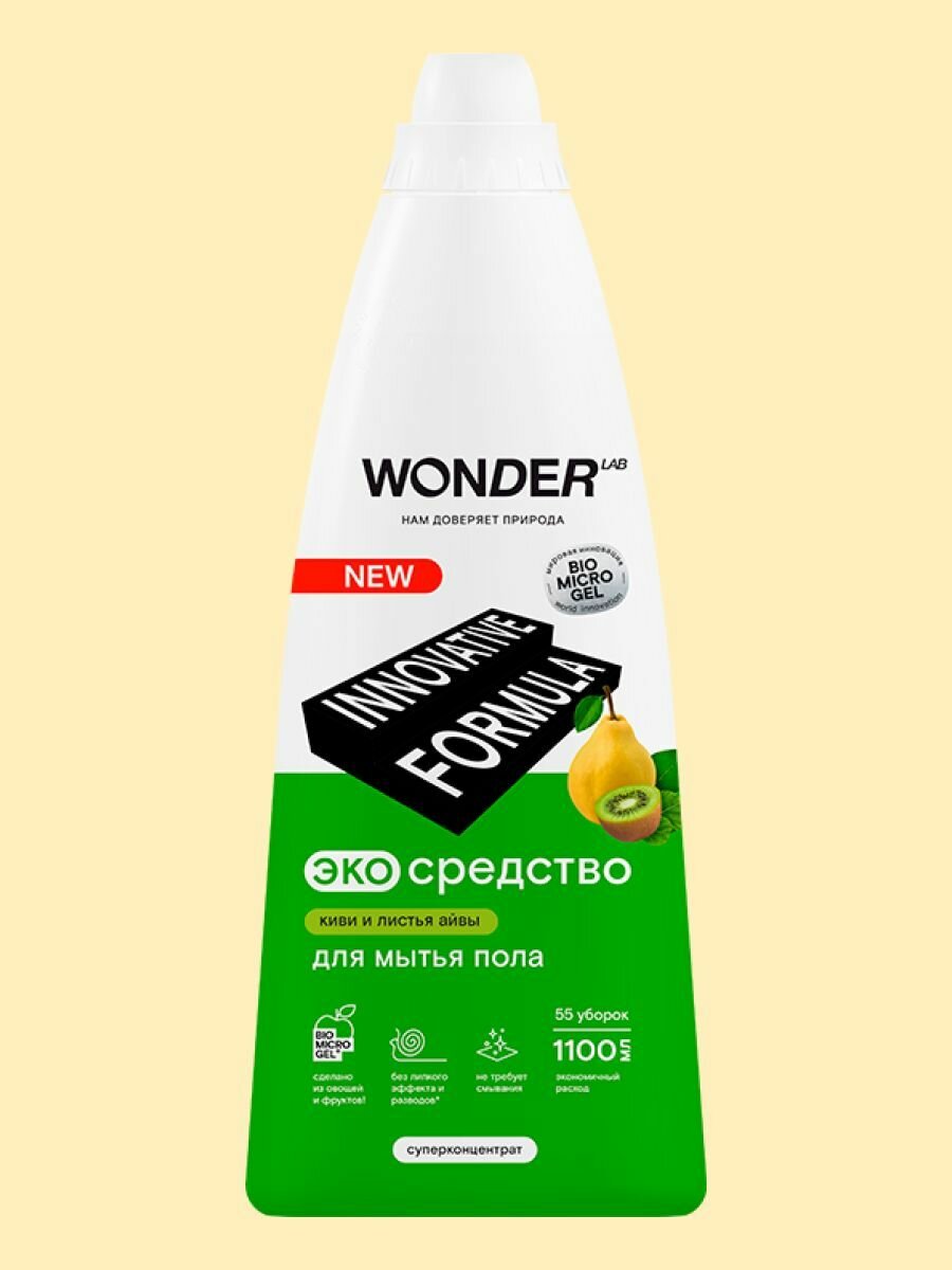 Эко средство для мытья пола WONDER LAB, концентрат с ароматом киви и листьев айвы, 1100 мл 414 ₽