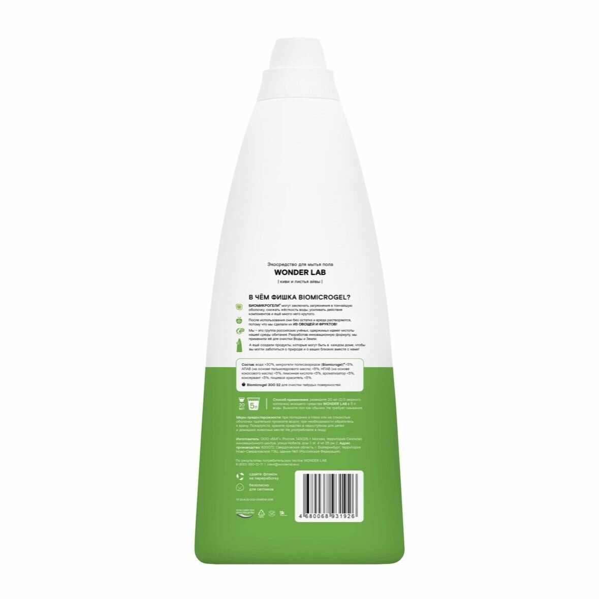 WONDER LAB ЭкоСредство для мытья пола, киви и листья айвы, 1100 мл, 2ШТ информация: