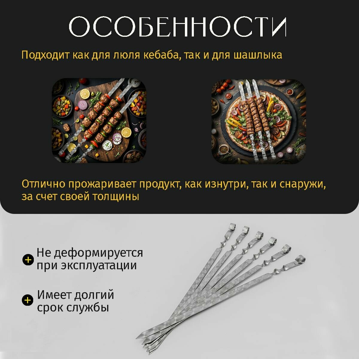Набор широких шампуров для люля кебаб 3мм информация: