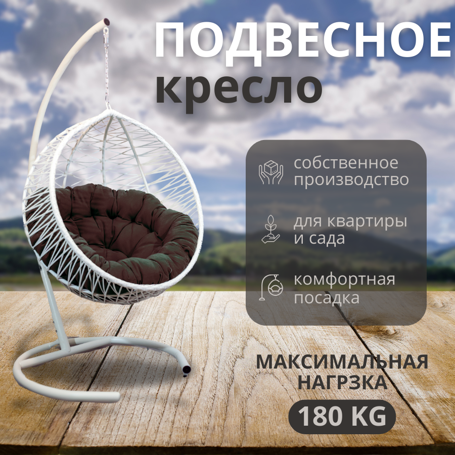 10 цен на Подвесное кресло бабочки, 100*78*110, белое ,темно-коричневая подушка